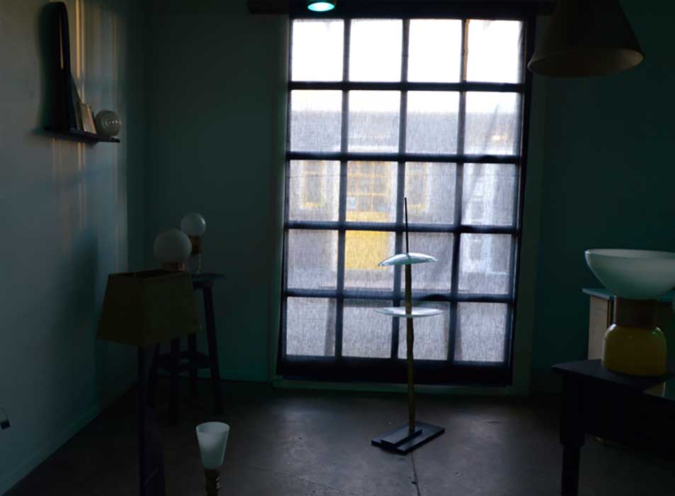 Accompanying the installation was a site-specific sound created with musician Laura Steenberge by using glass lamps as instruments, set to mark a rhythm and then crescendo in intervals to mark the passing of a work-day clock.