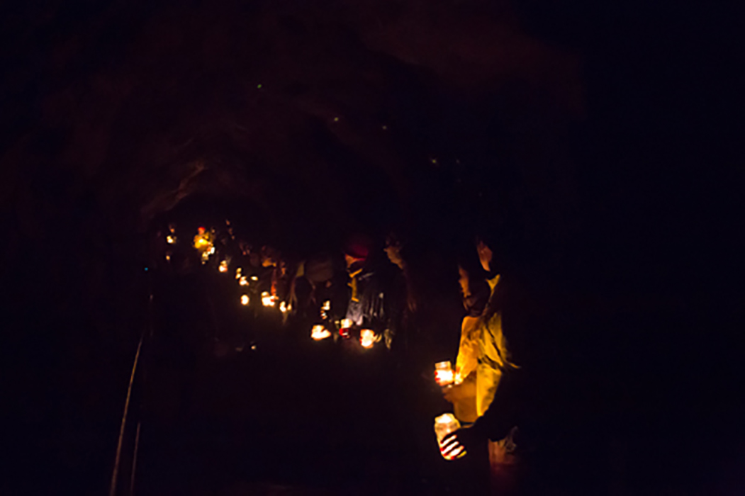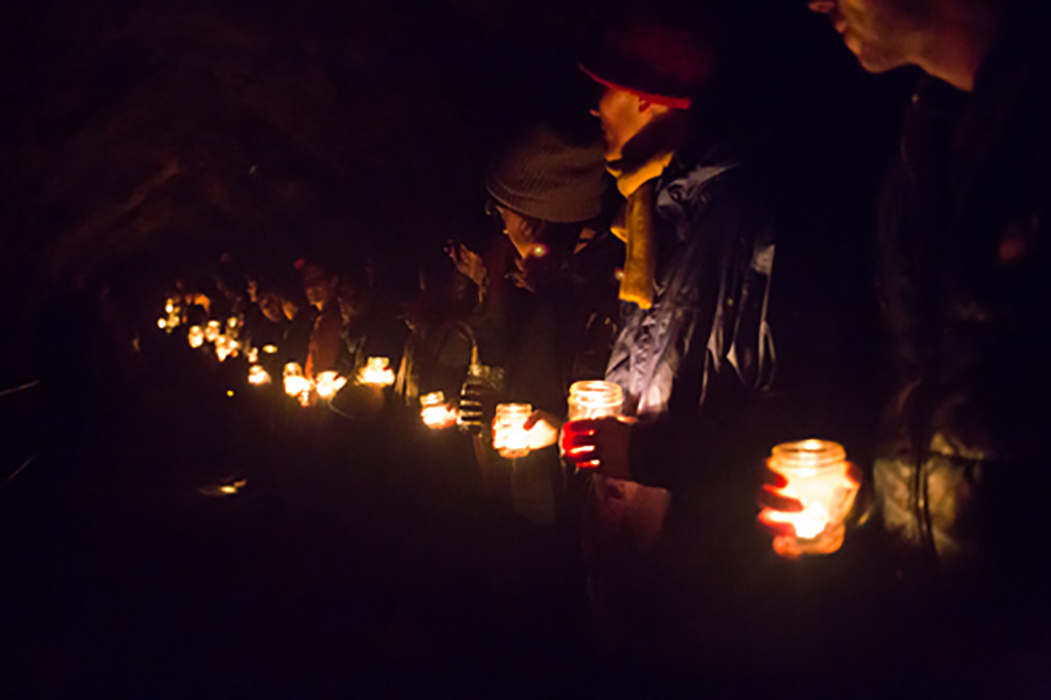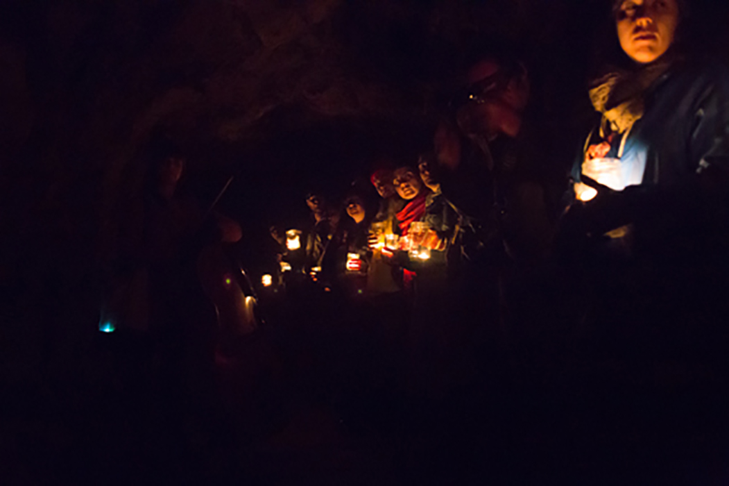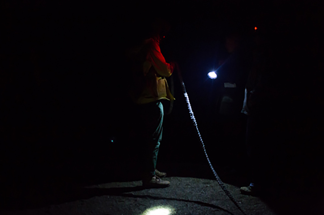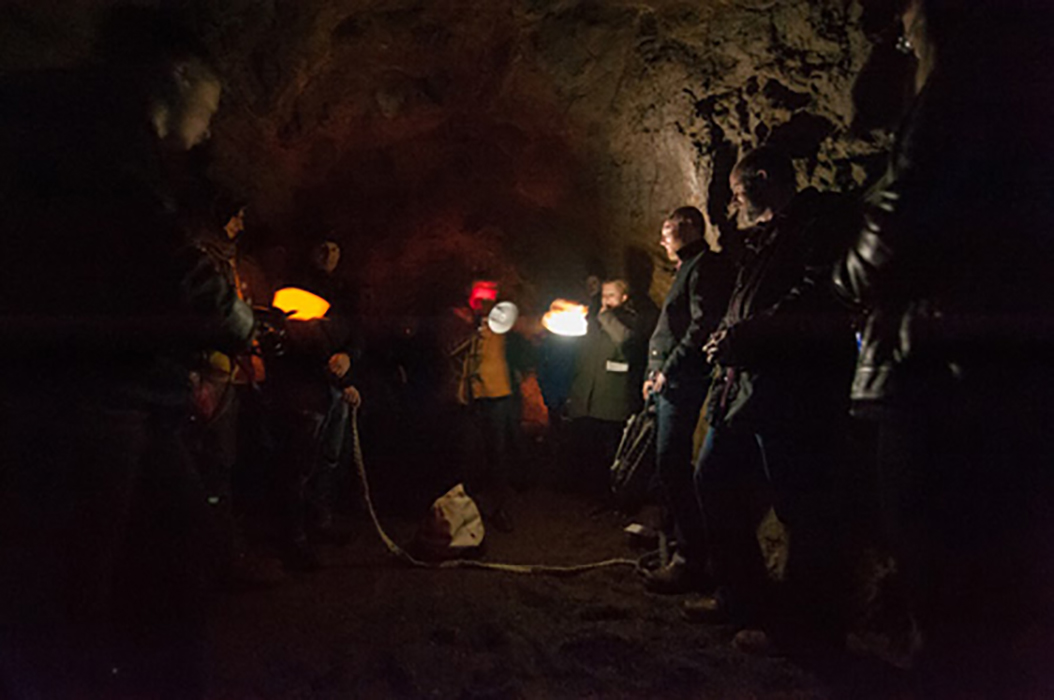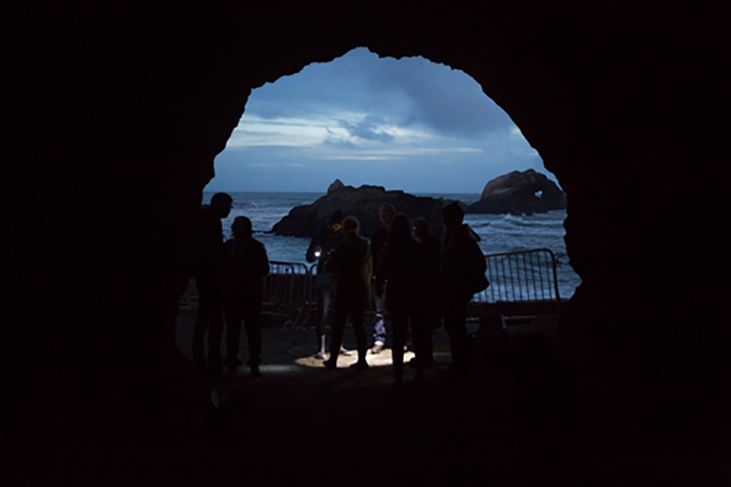 Fathoming A Cave was a collaborative performance and after dark investigation into echolocation at Sutro Cave in San Francisco. Talks about history of the cave, whale falls, sonic moth testicles, the size of sound, and the historic practice of measuring depth were all accompanied by performances by Laura Sterrnberge on her upright bass.